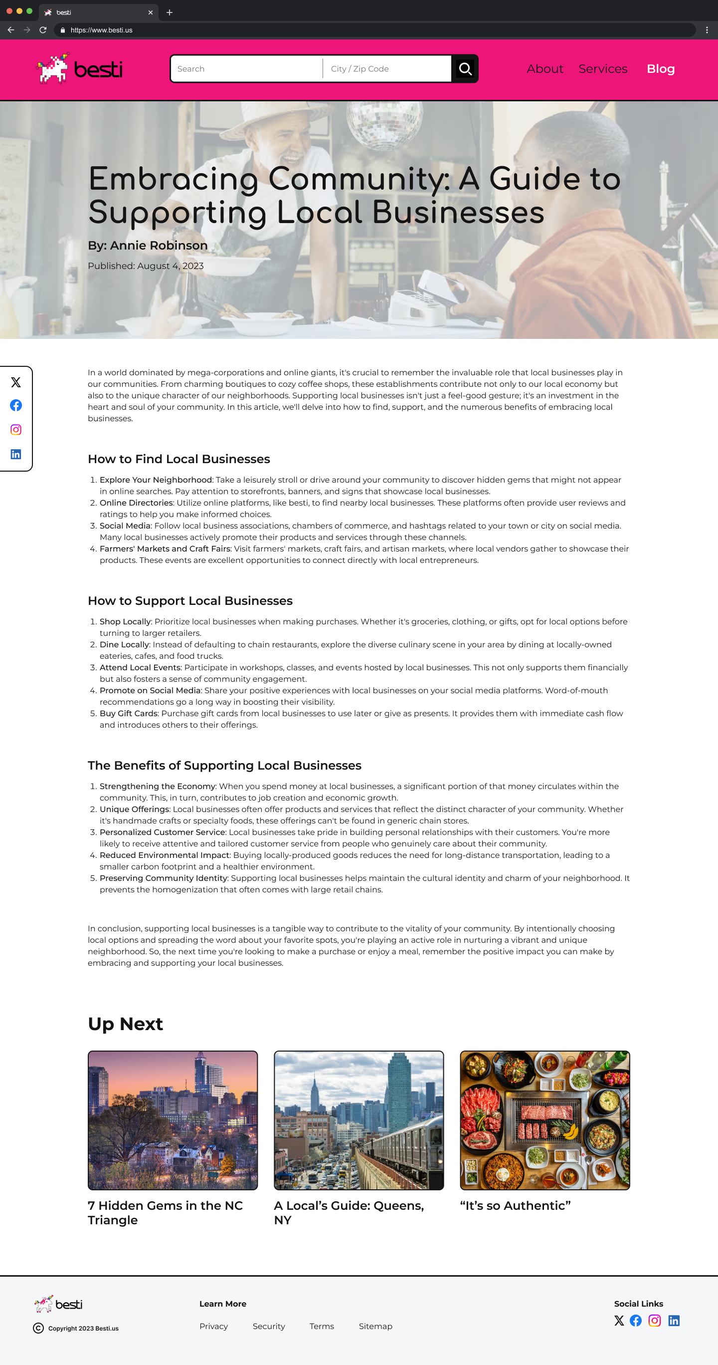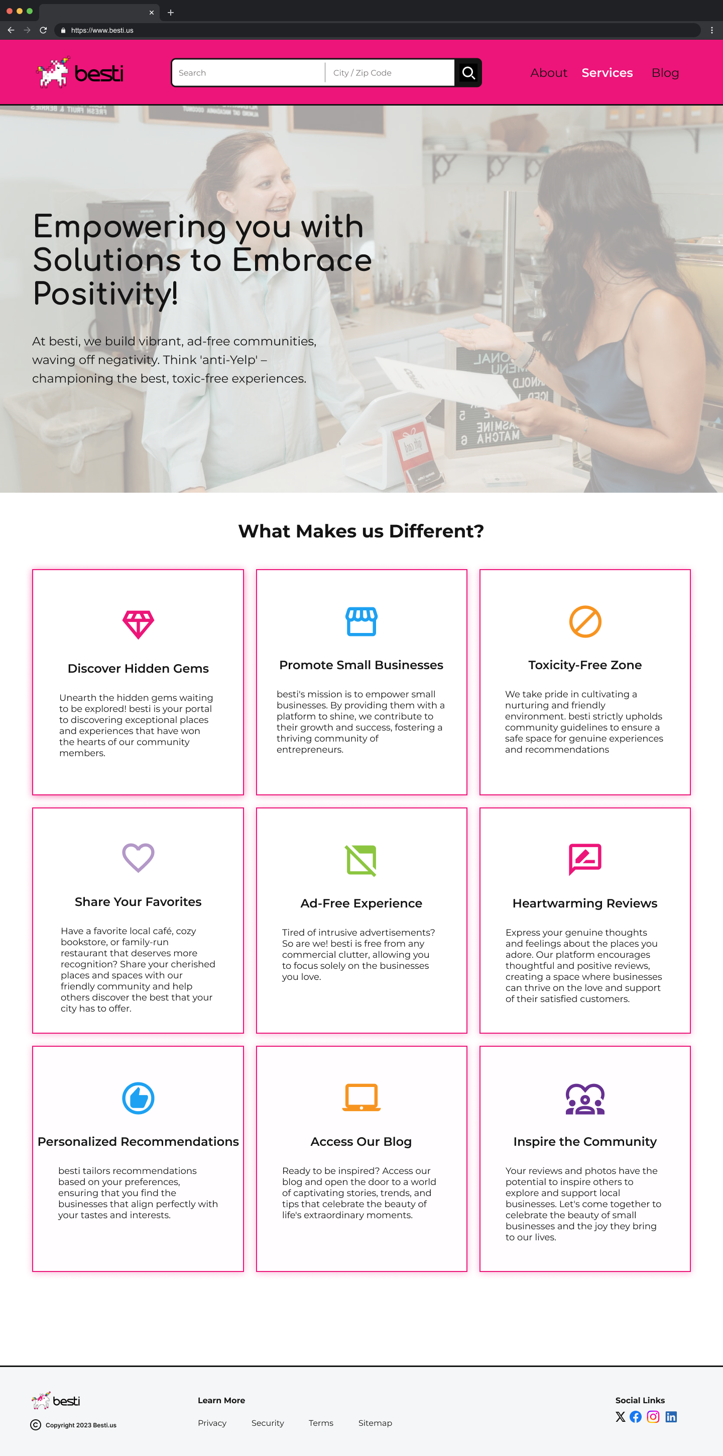 "Since we are small, we can keep it all on the About Us page."
