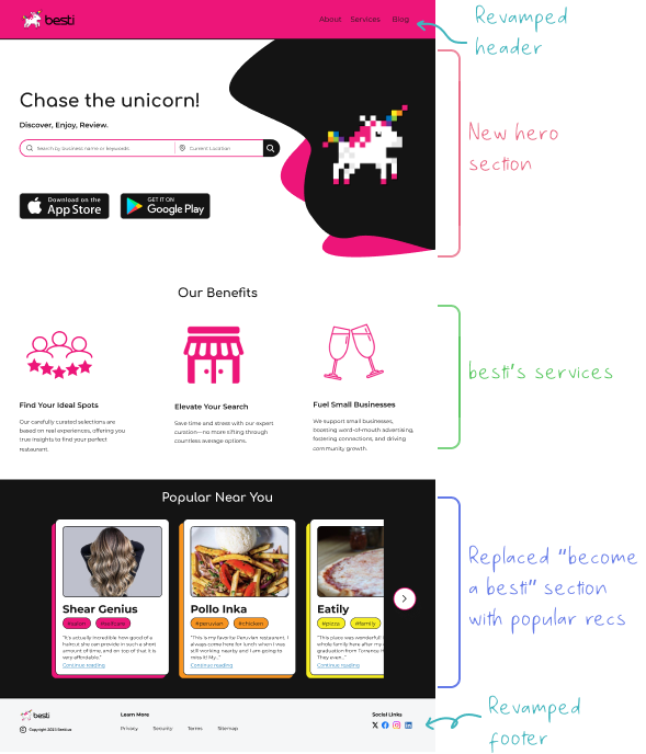 "Probably make it a separate page that details our business offerings. About us should focus on the team and our story."